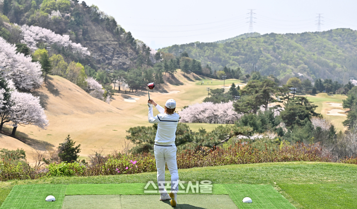 김병지 강원FC 사장이 13일 경기도 용인 코리아CC에서 열린 ‘2026 축구인 골프대회’에서 티샷을 하고 있다.