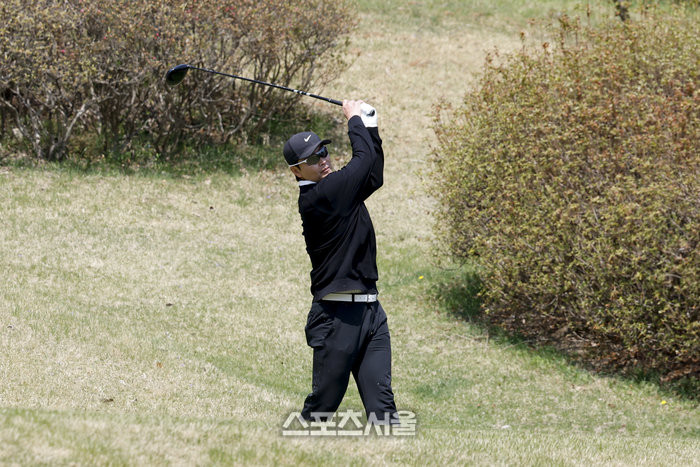 이동국 용인FC 테크니컬디렉터가 13일 경기도 용인 코리아CC에서 열린 ‘2026 축구인 골프대회’에서 티샷을 하고 있다.