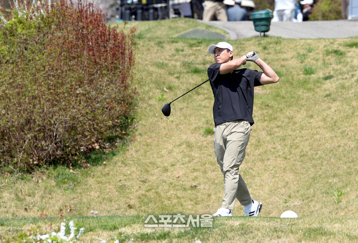 구자철 제주 어드바이저가 13일 경기도 용인 코리아CC에서 열린 ‘2026 축구인 골프대회’에서 티샷을 하고 있다.