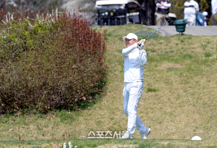 김병지 강원FC 사장이 13일 경기도 용인 코리아CC에서 열린 ‘2026 축구인 골프대회’에서 티샷을 하고 있다.