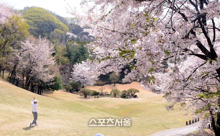 13일 경기도 용인 코리아CC에서 열린 ‘2026 축구인 골프대회’에서 한 참가자가 세컨샷을 하고 있다.
