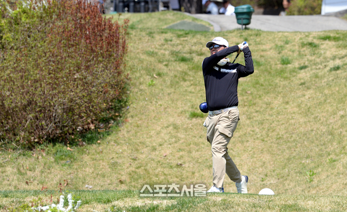 조자룡 제주SK FC 대표이사가 13일 경기도 용인 코리아CC에서 열린 ‘2026 축구인 골프대회’에서 티샷을 하고 있다.