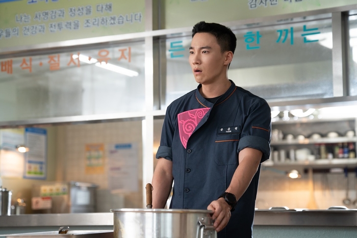 말년 병장 윤동현 역을 연기할 이홍내의 익살스러운 모멘트도 흥미롭다. 강림소초의 또 다른 취사병인 윤동현(이홍내 분)은 전역을 앞두고 있어 하루하루 무사태평하게 흘러가길 바라고 있다. 부대 식단에는 관심이 없는 듯, 병사식당 한복판에서 국자 대신 파리채를 든 채 진지한 표정으로 웃음을 자아낸다. 이에 그저 무탈하게 제대하고 싶은 윤동현과 부대 식단에 혁명을 일으킬 이등병 강성재의 극과 극 선후배 케미스트리 또한 주목된다.