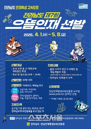 박종필 전남도 인재육성교육국장은 “우수 인재가 지역에서 안정적으로 성장하도록 실질적 지원을 강화하겠다”고 말했다.