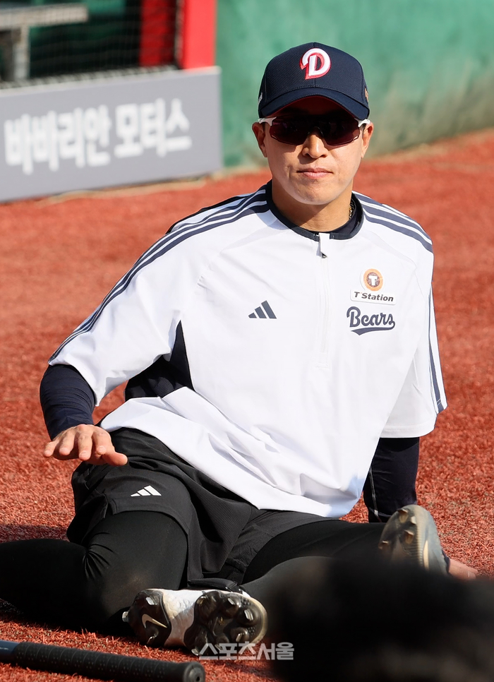 14일 오후 인천 SSG 랜더스필드에서 펼쳐지는 ‘2026 프로야구’ SSG 랜더스와 두산 베어스의 경기에 앞서 새로 합류한 두산 베어스 손아섭이 밝은 표정으로 몸을 풀고 있다.