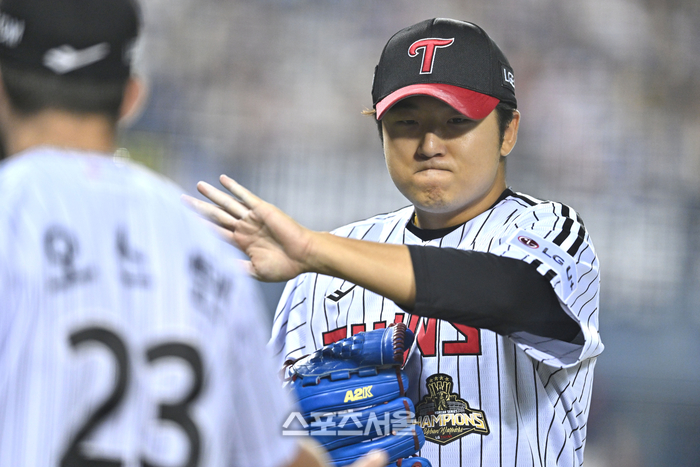 송승기 본인 투구 자체도 좋았지만, 수비 도움도 있었다. 특히 1회초 두 번의 어려운 타구를 잘 처리해준 오지환의 수비가 빛났다. 송승기 역시 당연히 이를 모르지 않는다. 이닝 종료 후 직접 감사 인사를 전했다.