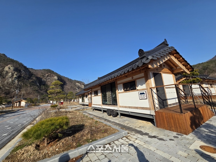 내변산의 맑은 물줄기를 품은 직소천 자동차 야영장은 부안군 변산면 중계리 일원에 약 5만㎡(약 1만 5000평) 규모로 조성됐다. 총 80동의 영지 중 가장 눈길을 끄는 것은 국내 국립공원 최초로 도입된 ‘한옥형 카라반(하우스형 26동)’이다. 기와지붕과 전통 창살 무늬를 현대적인 카라반에 접목해, 탐방객이 마치 시골 외갓집에 놀러 온 듯 정겹고 따뜻한 감성을 느낄 수 있도록 디자인했다.