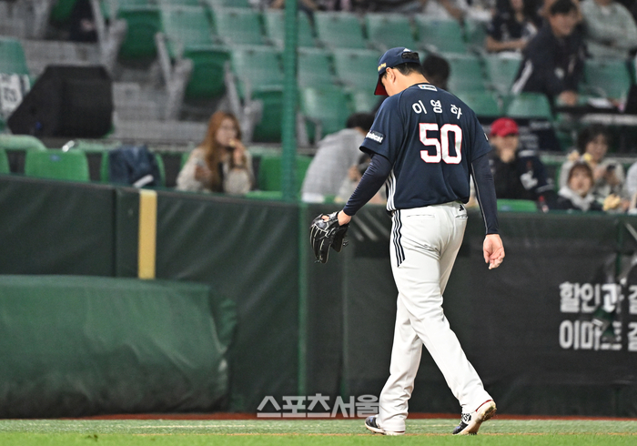 두산 선발투수 이영하가 15일 문학구장에서 열린 2026 KBO리그 SSG와의 경기 4회말 무사 1-2루 상황에서 마운드에서 내려가고 있다. 이영하는 3이닝 5피안타 3실점을 기록했다. 2026. 4. 15.