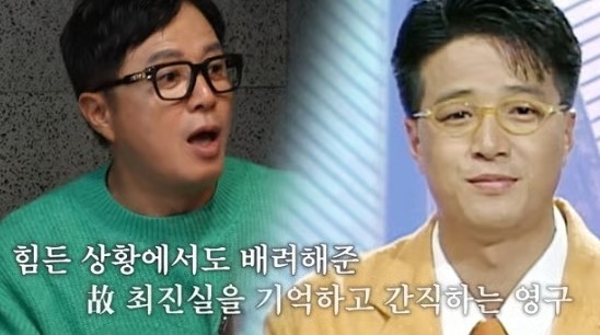 조영구는 “나는 인터뷰를 해가야 했다. 못 해가면 (회사에서) 욕을 먹는다. 하염없이 기다리는데 최진실이 몰래 ‘이리 오세요’라고 하더니 나만 살짝 인터뷰해줬다”며 “의리 때문에 해줄 수 없는 상황에서도 인터뷰해주더라”라고 고마움을 전했다.