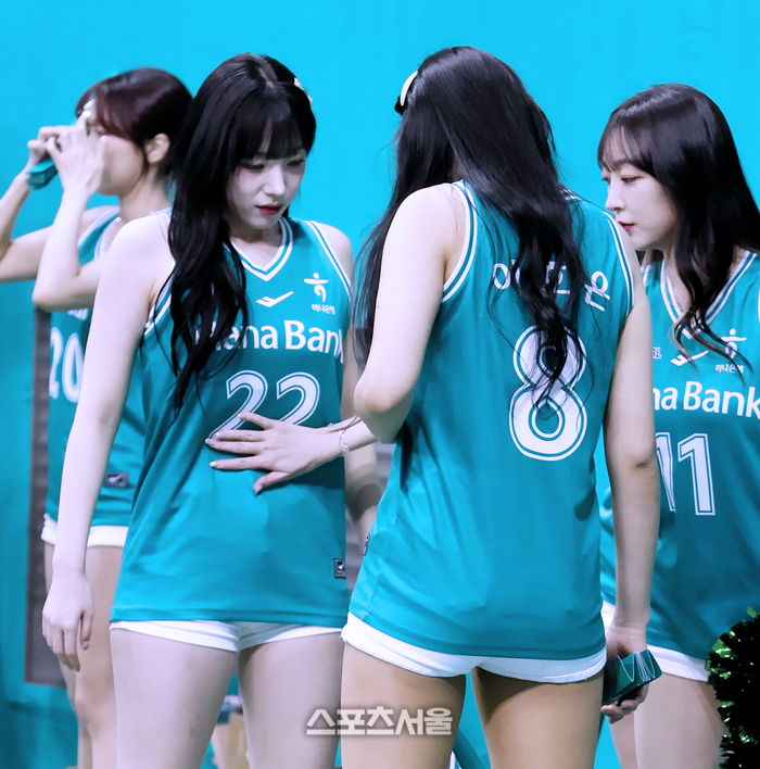 ‘2025~2026 여자프로농구’ 하나은행과 KB스타즈의 경기중이었다. 잠깐의 휴식 시간 틈을 탄 하나은행 치어리더들은 장난 삼매경에 빠졌는데. 치어리더 하지원이 ‘뱃살 제로(?)’를 외치자 주변 장난꾸러기 동료 마서연과 우수한, 이호은 등이 악착같이 그 사실(?)을 확인하는 장면 순간포착이었다.