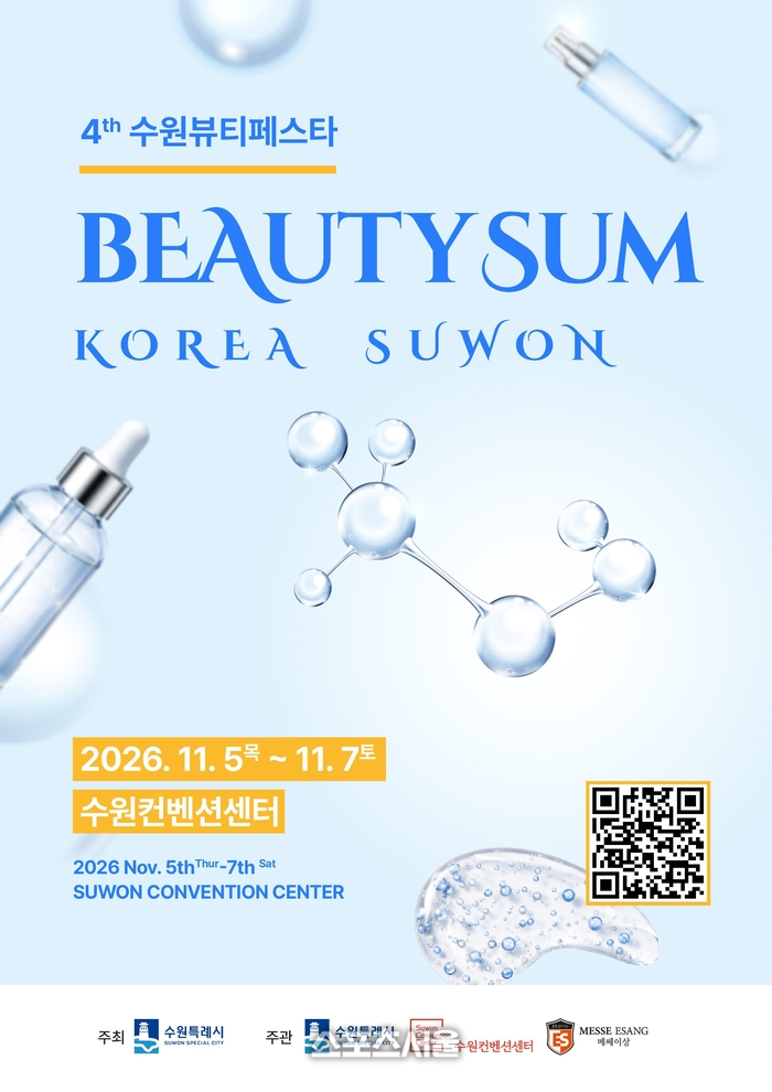 16일 시에 따르면 뷰티썸 수원(BeautySum Korea Suwon 2026)은 11월 5일부터 7일까지 수원컨벤션센터 1층 전시홀에서 열린다. 시가 주최하고, 수원시·(재)수원컨벤션센터·㈜메쎄이상이 주관한다. 100개 기업, 기관‧단체가 참가해 300개 부스를 운영한다.