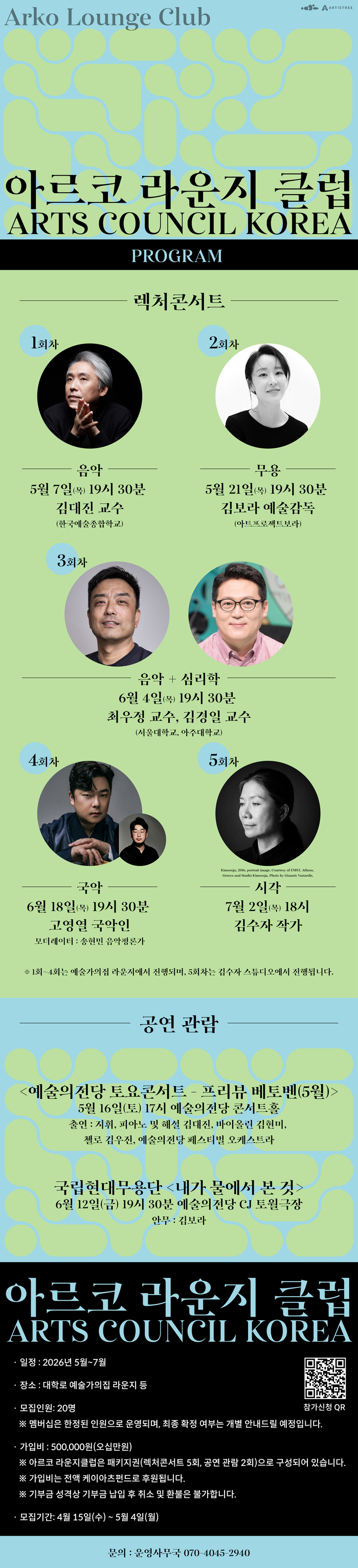 [스포츠서울 | 표권향 기자] 한국문화예술위원회(이하 아르코(ARKO))가 오는 5월7일부터 약 3개월간 서울 대학로 예술가의집 라운지에서 예술 애호가들을 대상으로 ‘아르코라운지클럽’ 4기를 진행한다.
