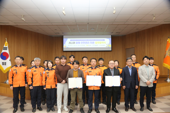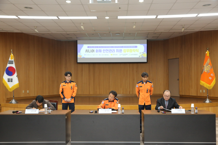 춘천소방서(서장 용석진)는 17일(금) 본서 대회의실에서 한국노인인력개발원, 춘천미래동행재단과 함께 ‘노인역량 활용 화재 안전관리 지원 시범사업’ 추진을 위한 3자 간 업무협약을 체결했다고 밝혔다.