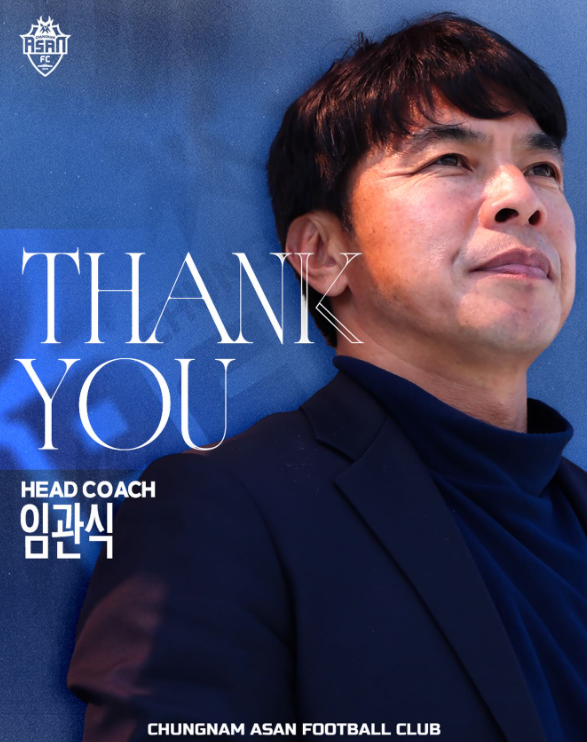충남 아산은 17일 “임관식 감독이 구단과의 동행을 마무리한다”라며 “그동안 충남 아산을 위해 힘써주신 임관식 감독께 진심으로 감사의 인사를 전한다”라고 공식 발표했다.