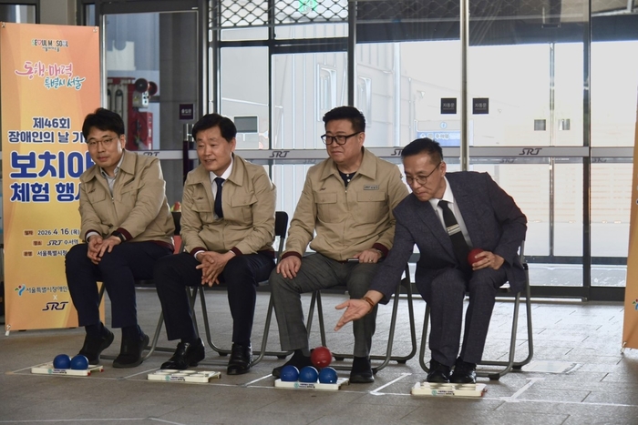 [스포츠서울 | 김동영 기자] 서울시장애인체육회가 ‘제46회 장애인의 날’을 앞둔 16일 수서역에서 서울특별시청 보치아팀과 에스알(SR) 보치아팀이 함께하는 장애인스포츠 재능나눔 행사를 개최했다.