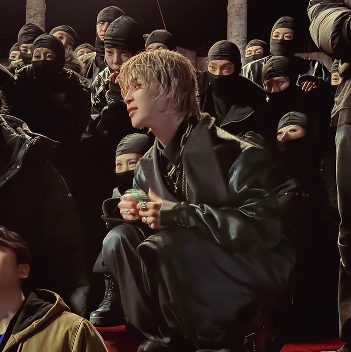 특히 눈길을 끈 것은 복면을 쓴 다수의 댄서들과 함께한 장면이다. 지민은 이들과 나란히 촬영본을 확인하는 듯한 모습으로 현장의 생생한 분위기를 전했다.