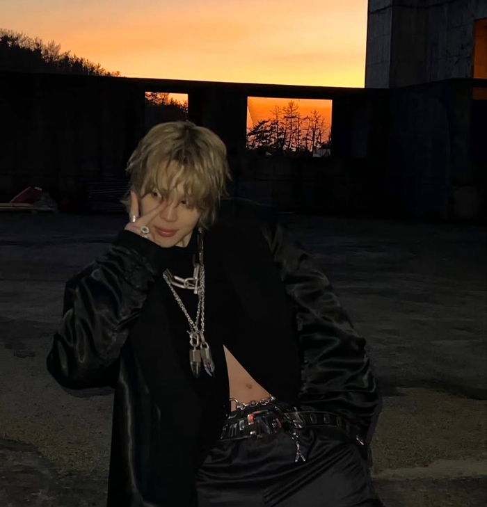 공개된 사진 속 지민은 올블랙 의상을 착용한 채 손으로 브이 포즈를 취하며 여유로운 분위기를 드러냈다.