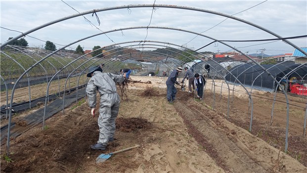 이번 활동은 고병원성 조류인플루엔자(AI) 특별방역대책기간 종료(4. 15.) 이후 추진된 것으로, 동물위생시험소장을 비롯한 직원들이 춘천시 신북읍 오미자 농장을 찾아 작업을 지원했다.