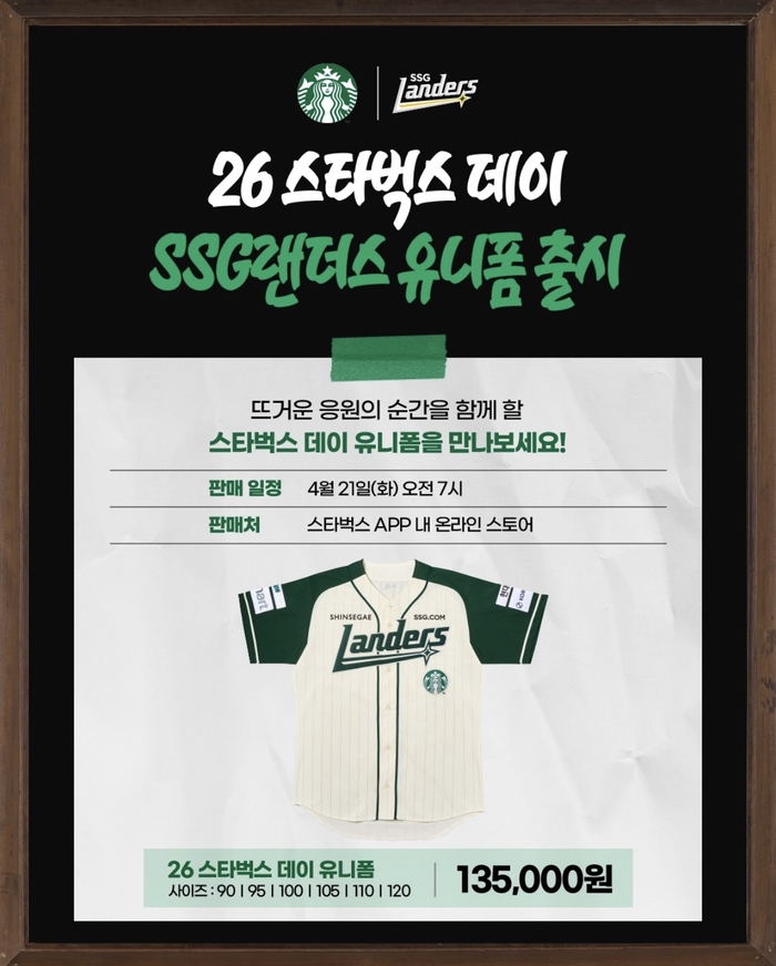 먼저 매년 팬들의 꾸준한 사랑을 받으며 협업 베스트셀러로 자리 잡은 ‘26 스타벅스 데이 SSG랜더스 유니폼’이 판매된다. 이번 유니폼은 21일 오전 7시부터 스타벅스 APP 내 온라인 스토어에서 단독으로 판매되며, 가격은 13만5000원이다.