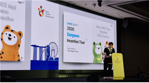 재단은 16일 싱가포르 힐튼 오차드 호텔에서 열린 행사에서 현지 여행업계 관계자 120여 명을 대상으로 강원 MICE 콘텐츠를 소개하는 제안 발표를 진행했다. 특히 ATPI Singapore 등 현지 주요 MICE 전문 여행사들과 1대1 비즈니스 상담을 진행하며 강원의 차별화된 지원제도와 ‘2026 강원 방문의 해’ 연계 프로그램을 집중 홍보하며 높은 관심을 이끌어냈다.