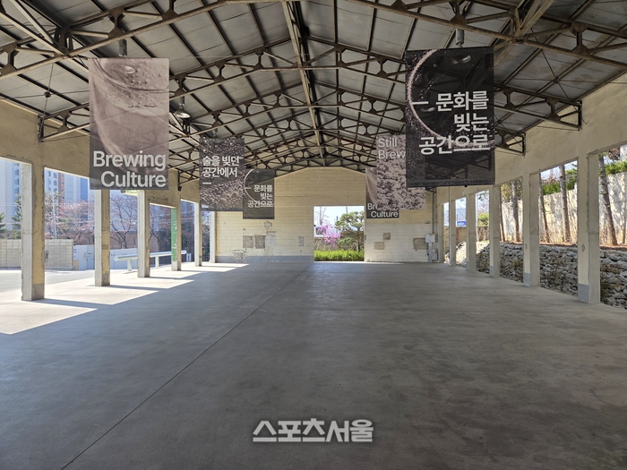 [스포츠서울 글·사진 | 화성=원성윤 기자] ‘술을 빚던 공간’에서 ‘문화를 빚는 공간’으로. 경기도 화성시 봉담읍, 빽빽한 고층 아파트 단지 사이에 묘한 시간의 경계가 존재한다. 1986년부터 국순당의 막걸리가 익어가던 옛 화성 양조장 터가 세련된 현대식 건축물과 어우러진 ‘비밀의 숲’으로 재탄생했다. 이곳은 국순당이 100억 원 이상을 투입해 일군 혁신 거점, ‘박봉담’이다. 뼈대만 남은 낡은 공장의 철골 구조 아래, 철저히 성인의 취향과 ‘쉼’에 집중하기 위해 흔한 어린이 의자나 유모차용 엘리베이터조차 과감히 비워냈다.