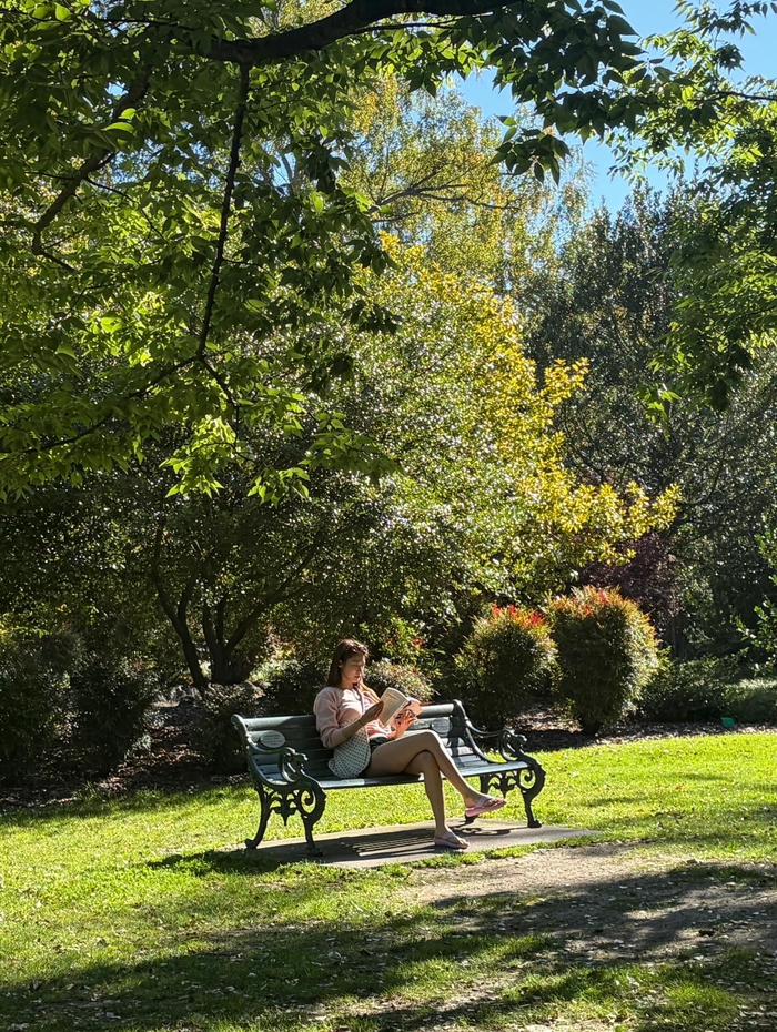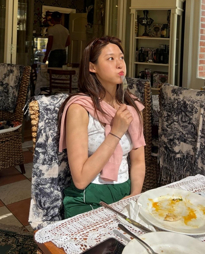 또 다른 사진에서는 식당에 앉아 음식을 기다리거나 공원 벤치에 앉아 독서에 집중하는 등 자연스러운 매력을 발산했다. 화장기 없는 수수한 얼굴에도 빛나는 피부와 청순한 분위기가 돋보인다.
