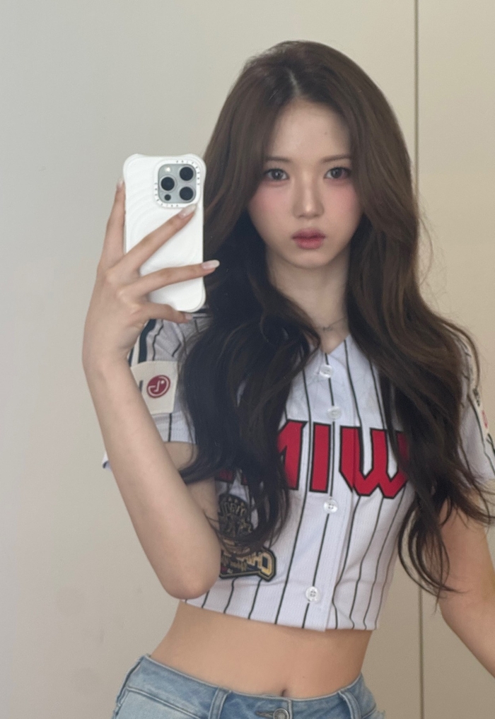 공개된 사진 속 지우는 LG 트윈스의 줄무늬 유니폼을 입고 거울 셀카를 촬영 중이다. 크롭 스타일로 연출한 유니폼 아래로 탄탄한 허리 라인과 인형 같은 미모를 뽐내며 시선을 사로잡았다. 긴 웨이브 헤어스타일은 지우 특유의 발랄하면서도 청순한 매력을 배가시켰다.