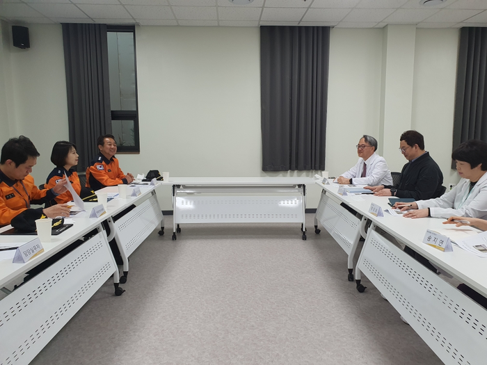 이날 현장에는 용석진 소방서장을 비롯해 예방안전과장, 화재안전조사팀장 등 총 4명이 참여해 병원 관계자들과 간담회를 갖고 비화재경보 저감 방안에 대한 의견을 공유했다.