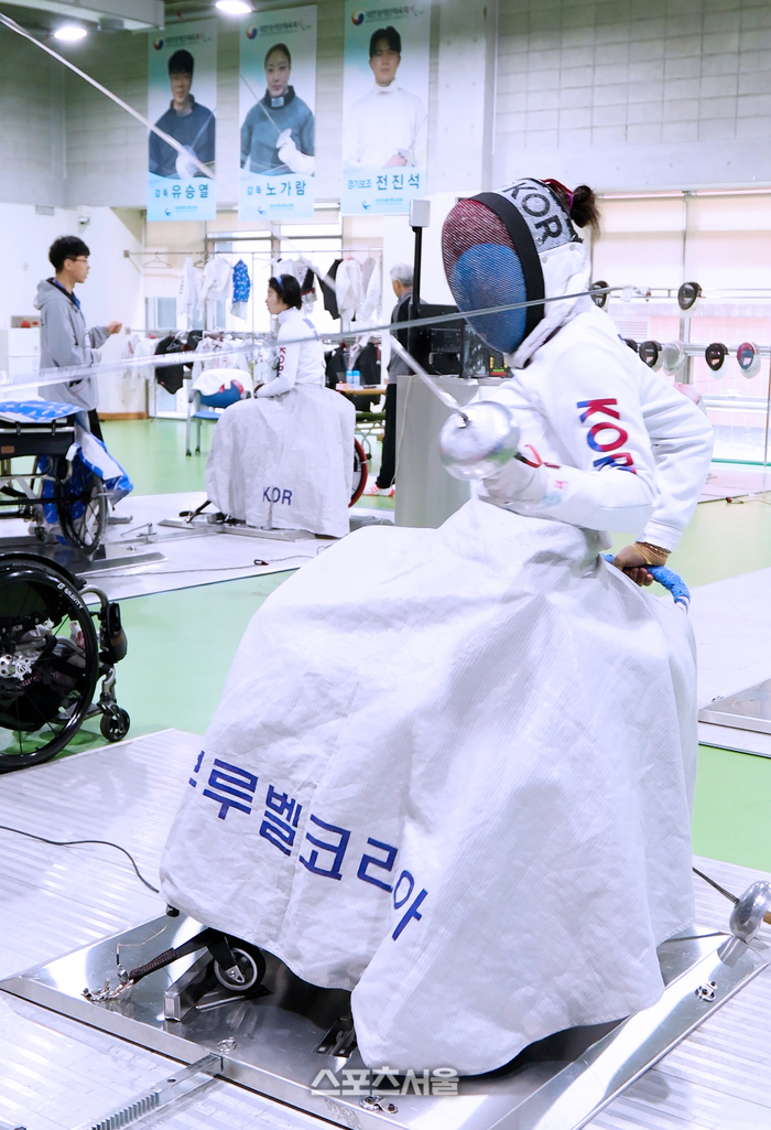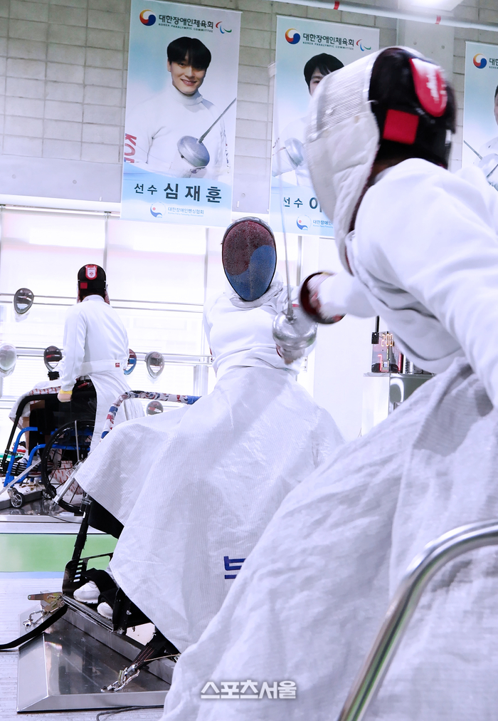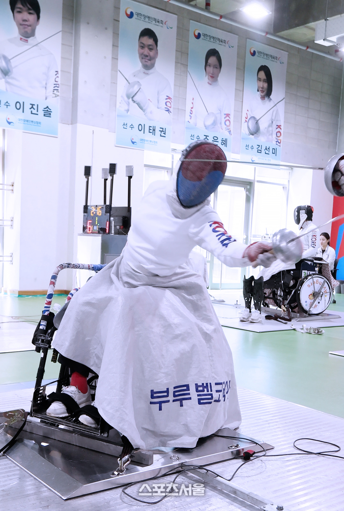 ‘2026 장애인펜싱 국가대표 강화훈련’에서 파리 패럴림픽 휠체어 펜싱 국가대표 조은혜가 훈련에 열중하고 있다.