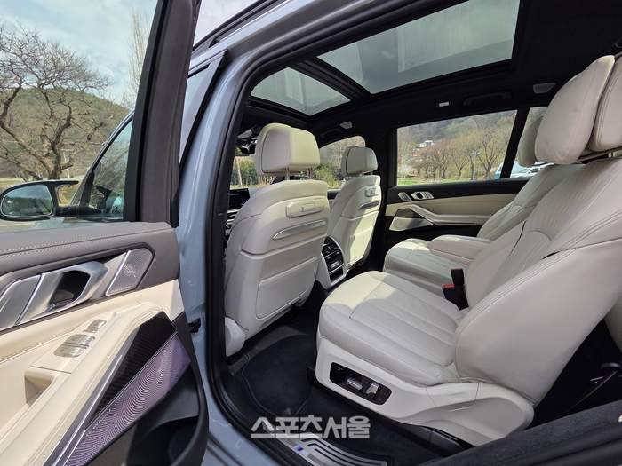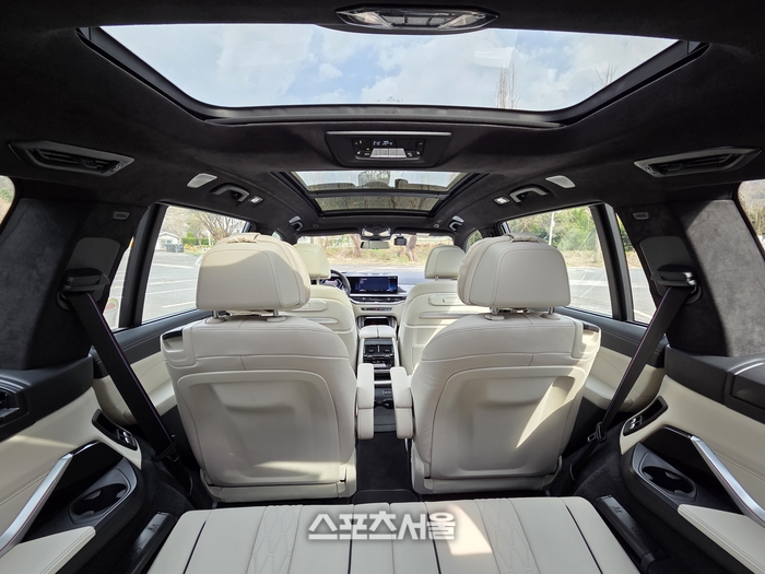 [스포츠서울 | 원성윤 기자] 음악 재생 버튼을 누르자 통통 튀는 비트 위로 보이넥스트도어의 목소리가 흘러나온다. 경쾌하고 자신감 넘치는 보이넥스트도어의 곡 ‘원 앤 온리(One and Only)’는 이 거대한 녀석의 문을 열기 전 느껴지는 묘한 설렘과 완벽하게 맞아떨어진다. 플래그십의 럭셔리함에 고성능 M의 심장을 품은 BMW X7 M60i는 도로 위에서 그야말로 독보적인 ‘원 앤 온리’의 존재감을 뽐낸다.