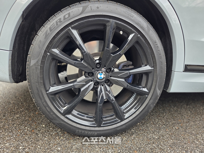 특히 휠과 타이어의 존재감이 대단하다. 스포티함을 극대화한 블랙 M 경합금 휠에 피렐리 P ZERO 고성능 타이어가 물려 있다. 그 안을 빈틈없이 채운 거대한 브레이크 디스크와 파란색 M 스포츠 캘리퍼는, 언제든 이 거구를 완벽하게 제어할 수 있다는 BMW의 자신감이 투영돼 있다.
