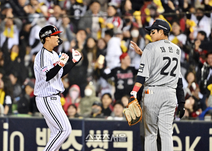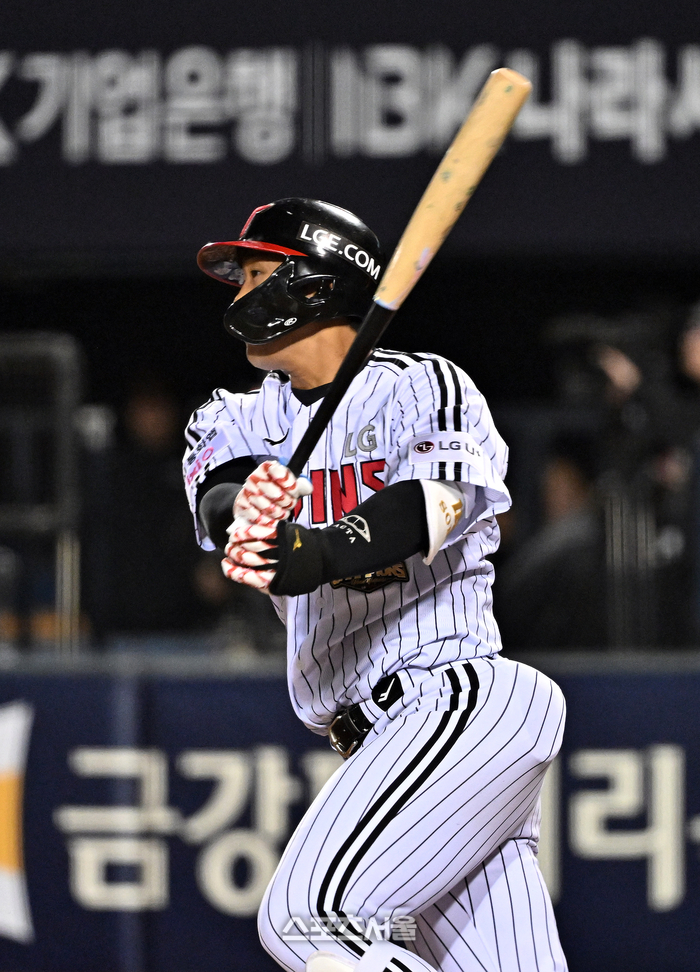 이날 기록한 홈런에서 눈에 띄는 건 상대 초구를 공략했다는 점이다. 우연이 아니다. 경기 전 전력 분석을 통해 상대가 초구 속구 승부를 좋아하는 걸 파악했다. 홍창기 도움이 컸다. 전력 분석을 하자는 얘기를 먼저 해줬고, 본인 태블릿 PC까지 빌려줬다.