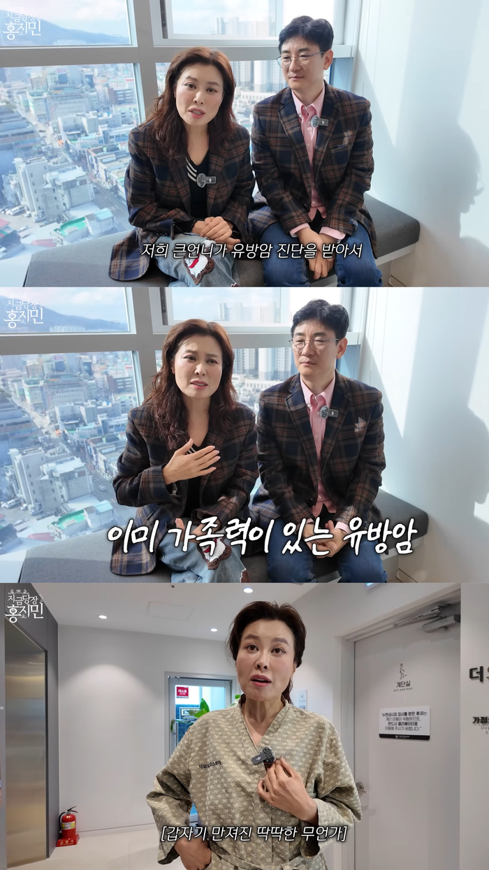 큰언니가 유방암 진단을 받은 이력이 있다고 밝힌 홍지민은 “지금은 완치 판정을 받았다. 하지만 가족력이기 때문에 저는 유방암에 대한 것도 체크해야 한다”고 말했다.