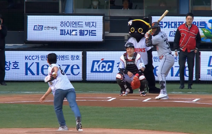 홈플레이트 쪽이 아닌 마운드 근처에서 시구를 선택한 이준은 진지한 눈빛으로 와인드업 자세를 잡았다. 결과는 패대기. 야심차게 뿌린 공은 바닥으로 고꾸라졌고, 이준은 부끄러운 표정을 지으며 퇴장했다.