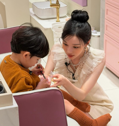 공개된 사진에는 최근 유튜브 ‘스튜디오슬램’ 촬영 현장에서 키즈모델 유이진 군과 함께한 모습이 담겼다.
