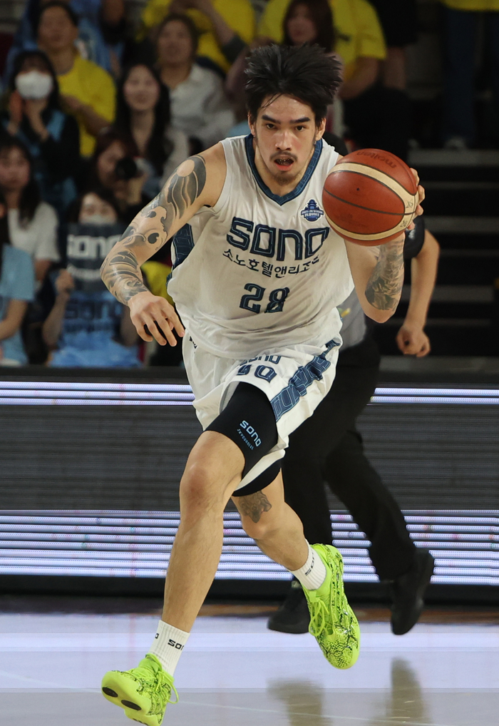 소노는 23일 창원체육관에서 열린 2025~2026 LG전자 프로농구 4강 플레이오프 1차전 LG와 경기에서 내내 뒤지다 4쿼터 역전에 성공하며 69-63으로 이겼다.