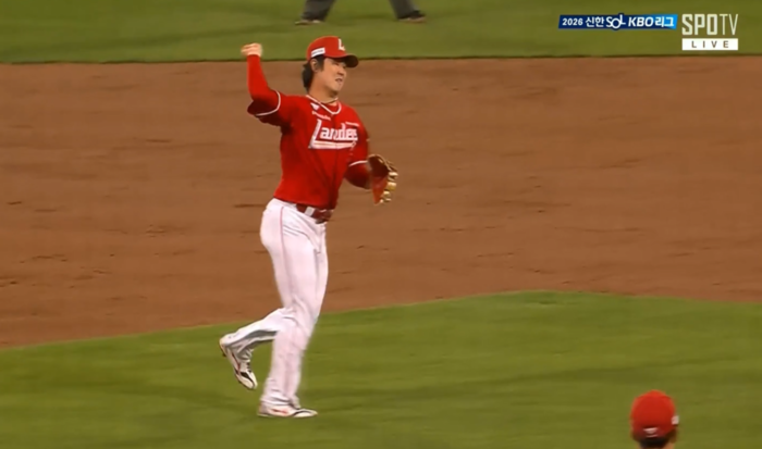 [스포츠서울 | 박경호 기자] SSG 랜더스 최정의 원바운드 송구 모습이 화제다.