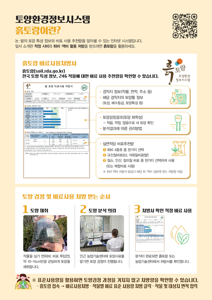 센터는 영농철을 맞아 농업인 교육과 현장 지도, 품목별 교육과 연계해 토양검정 참여를 확대하고 적정시비 실천 사례를 지속적으로 안내할 방침이다.