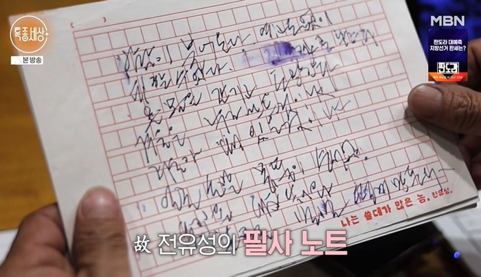 그가 생전 남긴 필사 원고에는 ‘바람이 불어온다. 예고도 없이. 피할 수 없다. 온몸을 갈기고 도망간다’는 문장이 담겨있다.