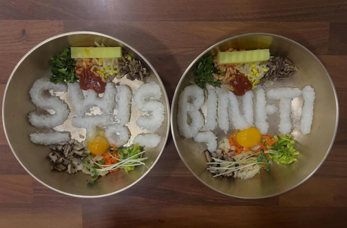 유비빔은 지난 22일 자신의 SNS에 “서로의 이름을 비벼주면서 화해하소서”라는 글과 사진을 게재했다. 사진에는 ‘스윙스’ ‘빅나티’란 단어가 비빔밥에 담겨 있는 모습이다.