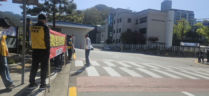 [스포츠서울ㅣ김기원 기자]김왕규 무소속 양구군수 예비후보가 24일(금) 아침 양구군청 앞 상무룡2리 마을회 항의집회 현장을 격려 방문했다.