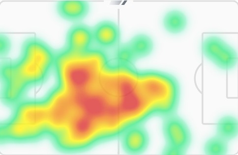 김민재의 히트맵을 보면 뱅상 콩파니 감독이 지향하는 대로 2선 지역까지 폭넓게 움직였다. 공격적인 수비, 빌드업 관여를 통해 대역전극의 기점 노릇을 했다.