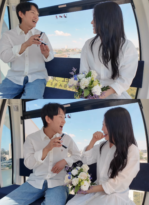이날 한지우는 대관람차 안에서 박성우에게 프러포즈 받는 장면을 공개하며 “1년 전, 저는 이 관람차 안에 있었다. 낯선 도시의 공기, 마주 앉은 한 사람. 그때 저는 ‘이 사람과 함께 걸어보고 싶다’고 생각했다. 확신은 아니었다. 작은 용기에 가까웠다”고 말했다.