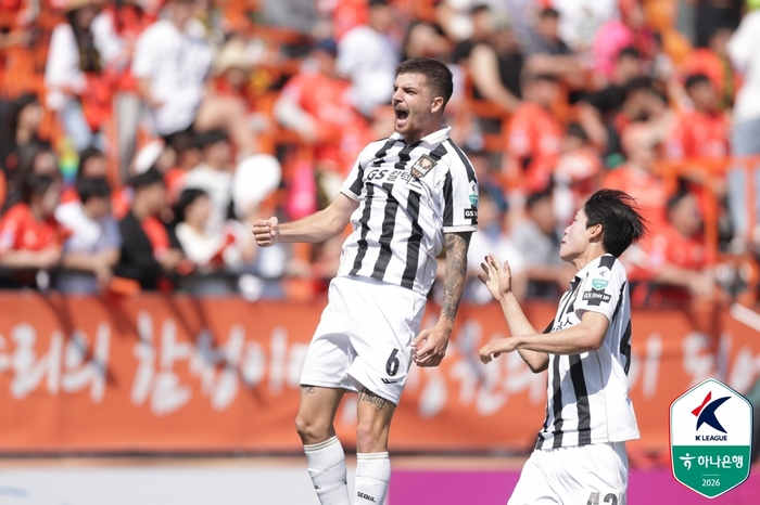 하지만 서울은 끈끈하게 버텨냈다. 그리고 집념을 발휘, 전반 42분 세트피스를 통해 기어코 선제골을 끌어냈다. 미드필드 왼쪽에서 정승원이 차올린 공이 문전 혼전으로 이어졌다. 이어 손정범의 슛이 수비 블록에 걸렸는데 바베츠가 한박자 빠르게 오른발 리바운드 슛으로 연결해 골문을 갈랐다.