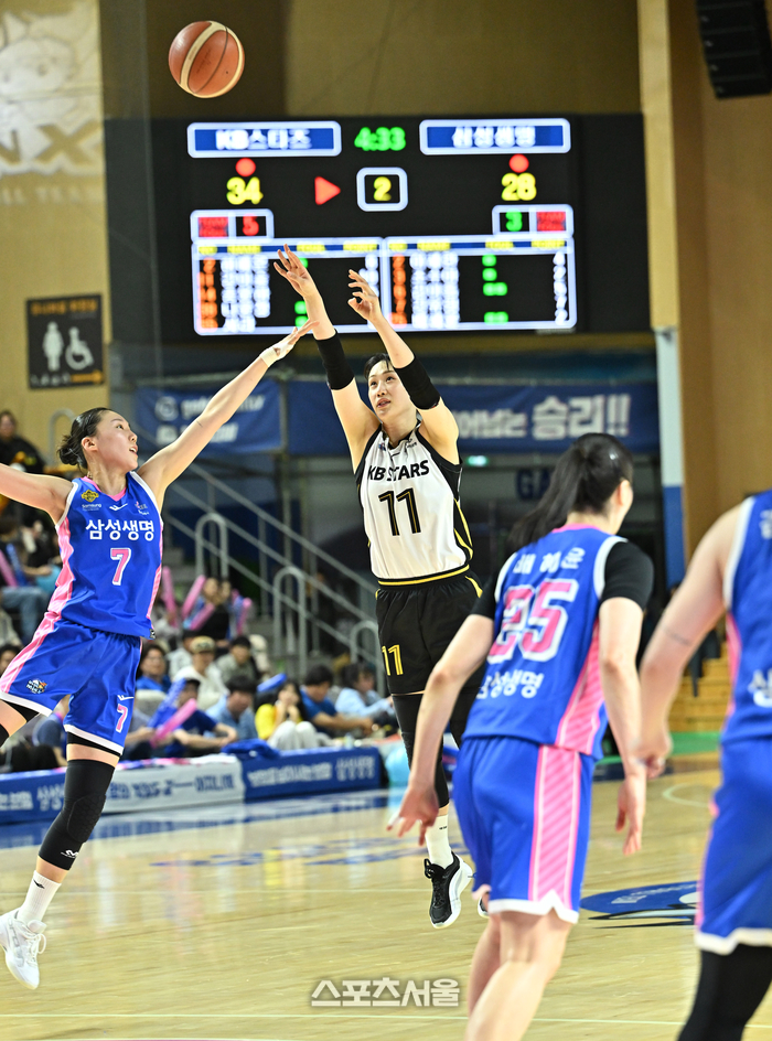 KB가 26일 용인실내체육관에서 열린 BNK금융 2025~2026 여자프로농구 챔피언결정전 3차전에서 용인 삼성생명을 80-65로 제압했다. 1쿼터 시작부터 높은 에너지 레벨을 보여주며 삼성생명을 압박했다. 좀처럼 리드를 잃지 않았고 3차전에서 시리즈를 마무리했다.