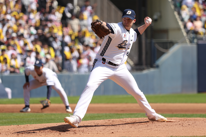 두산 선발 웨스 벤자민은 7이닝 10안타(1홈런) 1볼넷 5삼진 3실점 퀄리티스타트 플러스(QS+) 호투를 뽐냈다. 투구수는 88개다. 90개 예정으로 올라갔다. 2개 덜 던지면서 7이닝 소화면 일품이다.