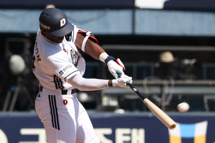 2회말 두산이 먼저 1점 냈다. 2사 주자 없는 상황에서 임종성이 송승기 상대로 벼락 같은 좌월 솔로 홈런을 날렸다. 1-0이 됐다. 3회말에는 2사 후 카메론이 좌월 2루타를 때려 득점권 기회를 스스로 창출했다. 박준순이 좌전 적시타를 쳐 2-0이다.