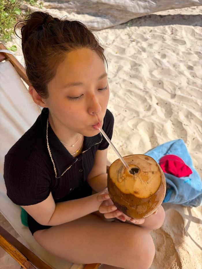또 다른 사진에서 설현은 빨간색 모자를 쓰고 스노클링 장비를 착용한 채 바닷속에서 찾은 불가사리를 들고 환한 미소를 짓고 있다. 코코넛 음료를 마시거나 배 위에서 구명조끼를 입고 찍은 셀카 등 꾸밈없는 일상 속에서도 빛나는 비주얼이 감탄을 자아낸다.