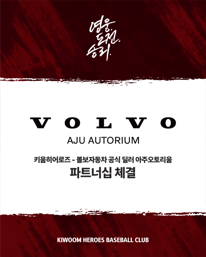 키움은 “볼보자동차 공식 딜러 아주오토리움과 2026시즌 파트너십을 체결했다”고 27일 밝혔다.