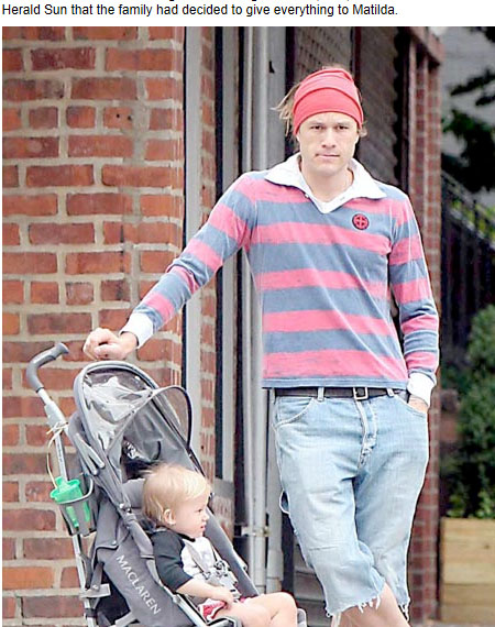 그는 딸 마틸다를 끔찍히 아꼈고 파파라치 사진을 통해 딸과 함께 나들이를 즐기며 시간을 보내는 모습이 자주 공개됐다. 특히 히스 레저와 딸 마틸다는 금발 머리에 뚜렷한 이목구비 등 똑 닮은 외모를 자랑했다.